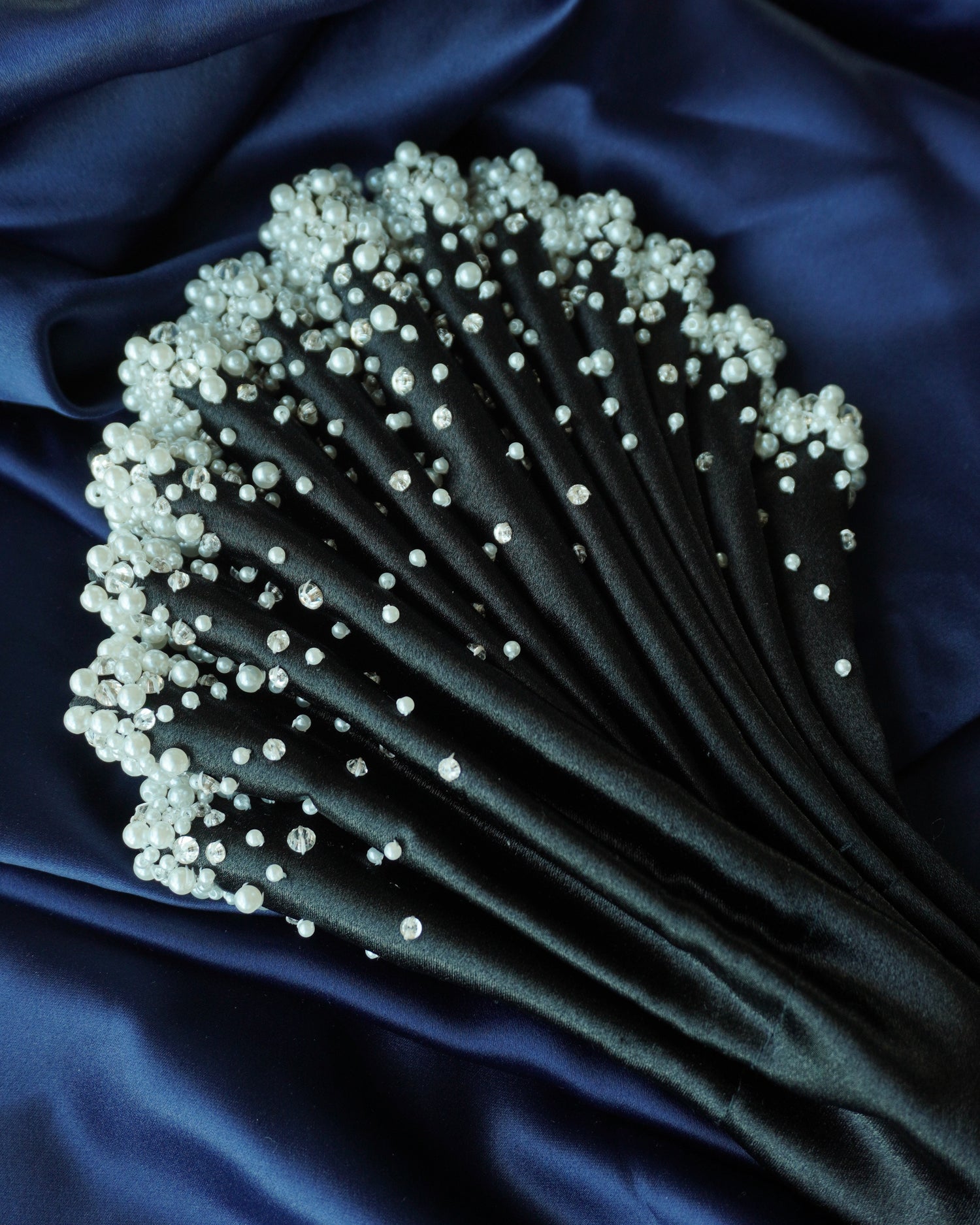 Every garment is designed, cut, sculpted, and sewn by hand in our house. Techniques are drawn from traditional couture, adapted to reclaimed materials and reimagined silhouettes.
